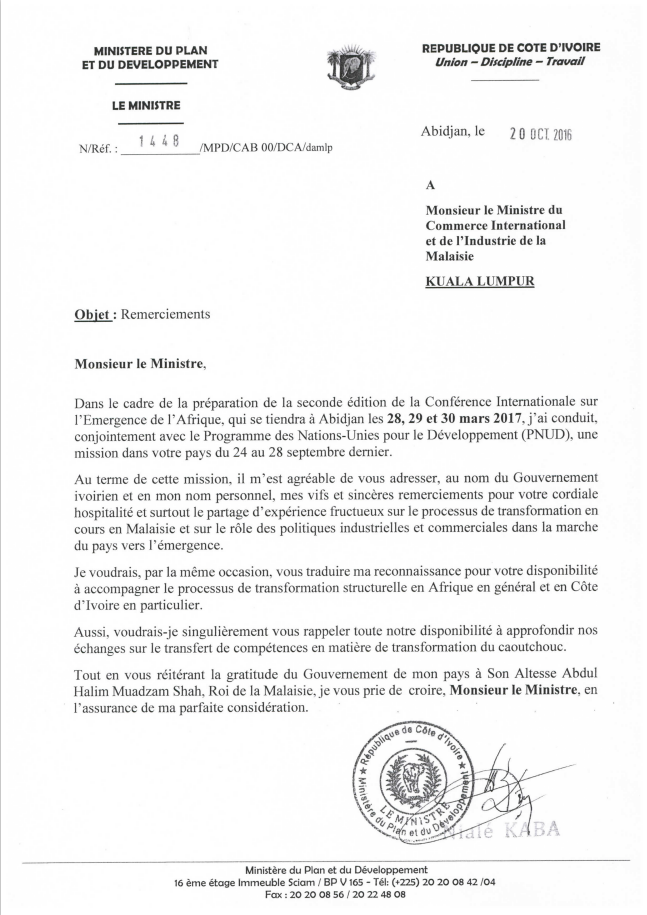 Remerciements Dans le cadre de la préparation de la seconde édition de la Conférence Internationale sur l’Emergence de l’Afrique, qui se tiendra à Abidjan les 28, 29 et 30 mars 2017