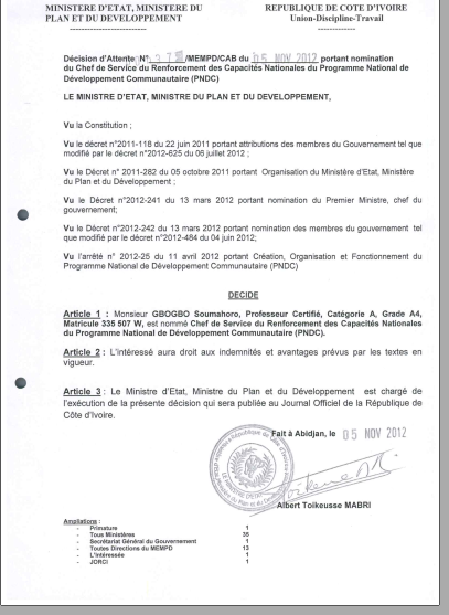 Projet de décision d'attente portant nomination du chef de service Renforcement de Capacités du PNDC