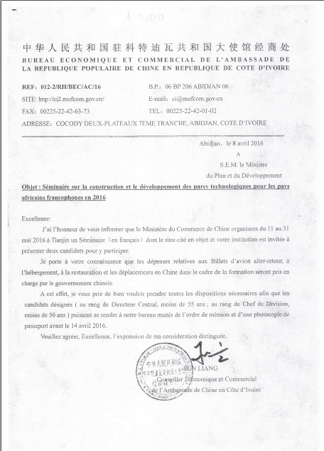 Séminaire sur la construction et le développement des parcs technologiques pour les pays africains francophones en 2016