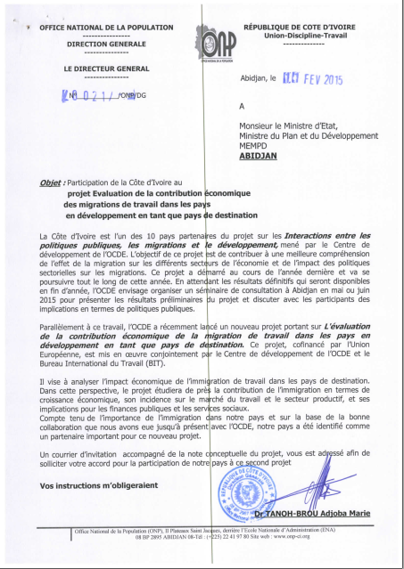 Participation de la Côte d'Ivoire au projet évaluation de la contribution économique des migrations de travail dans les pays de développement en tant que pays destination