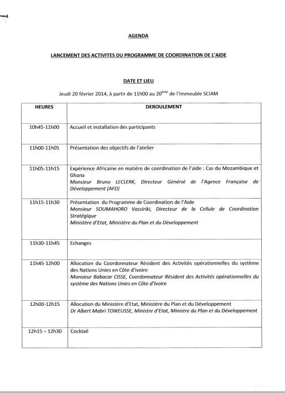 LANCEMENT DES ACTIVITES DU PROGRAMME DE COORDINATION DE L'AIDE