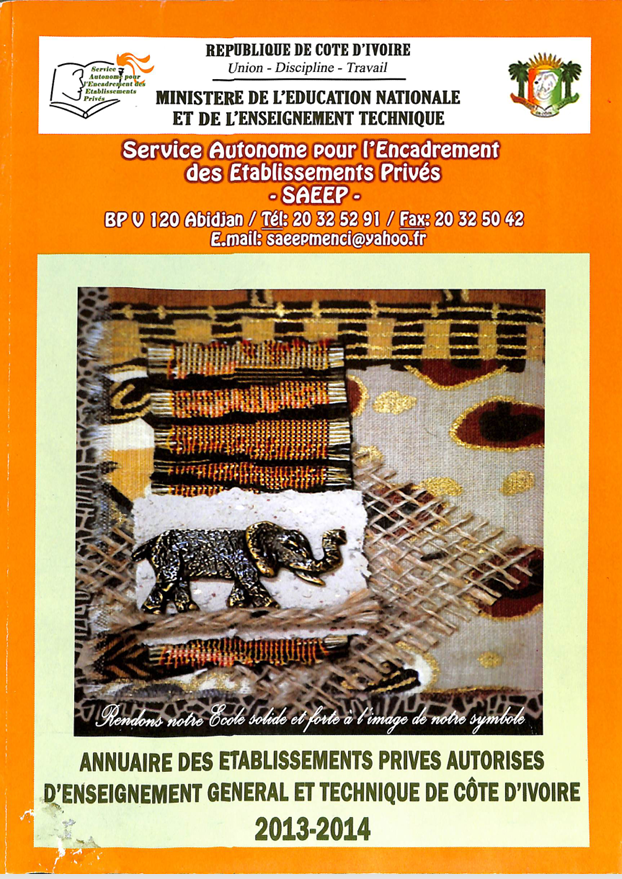 Annuaire des établissements prives autorisés d'enseignement général et technique de côte d'ivoire 2013-2014