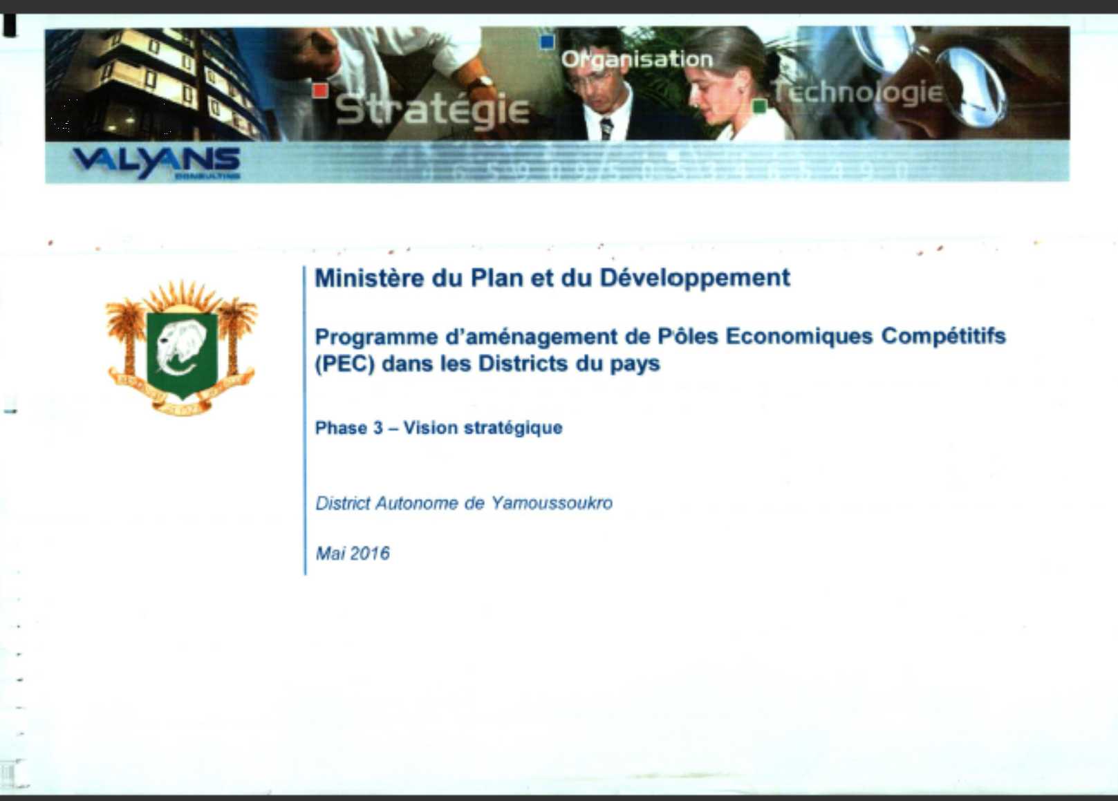 PROGRAMME D'AMENAGEMENT DES POLES ECONOMIQUES COMPETITIFS (PEC) DANS LES DISTRICTS DU PAYS Districk de yamoussokro