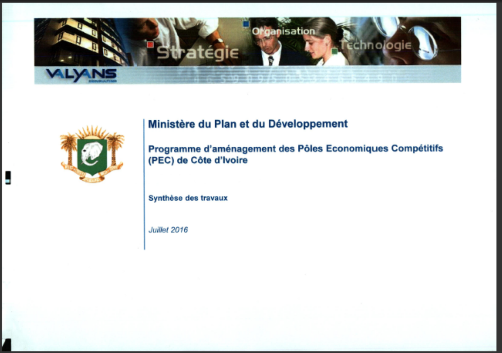 PROGRAMME D'AMENAGEMENT DES POLES ECONOMIQUES COMPETITIFS (PEC) DE CI SYNTHESE DES TRAVAUX