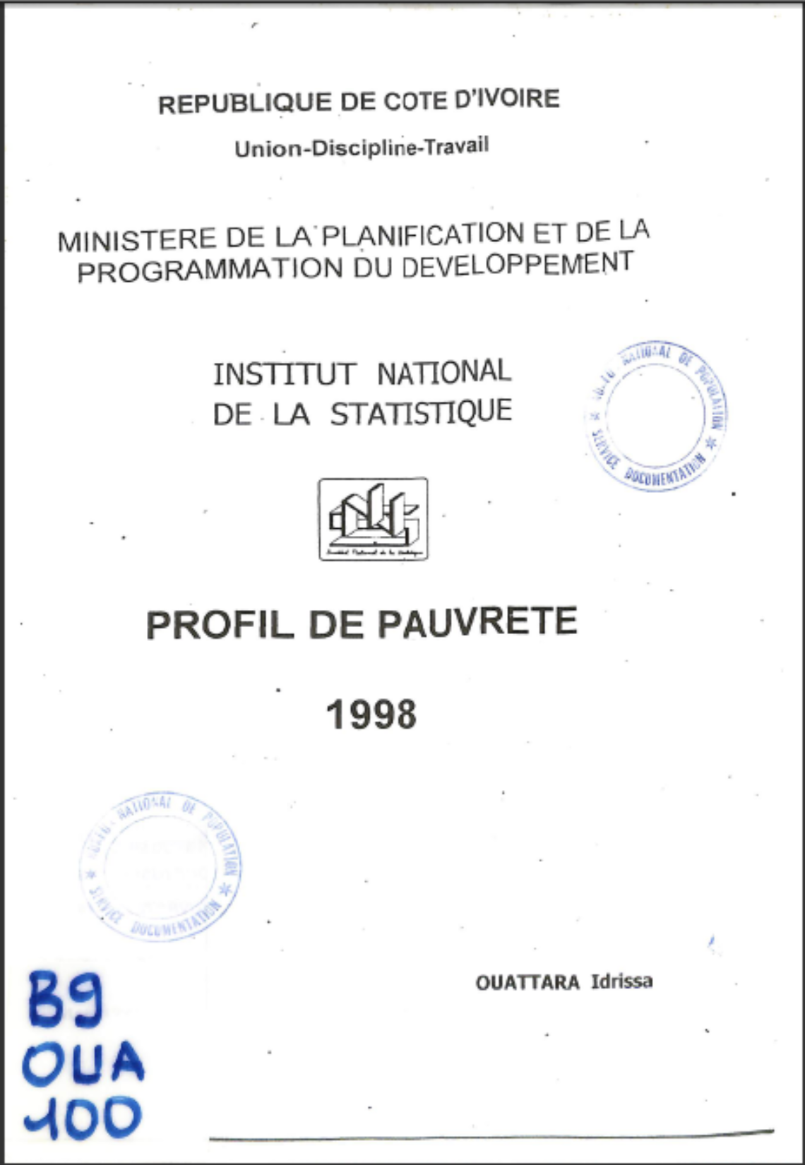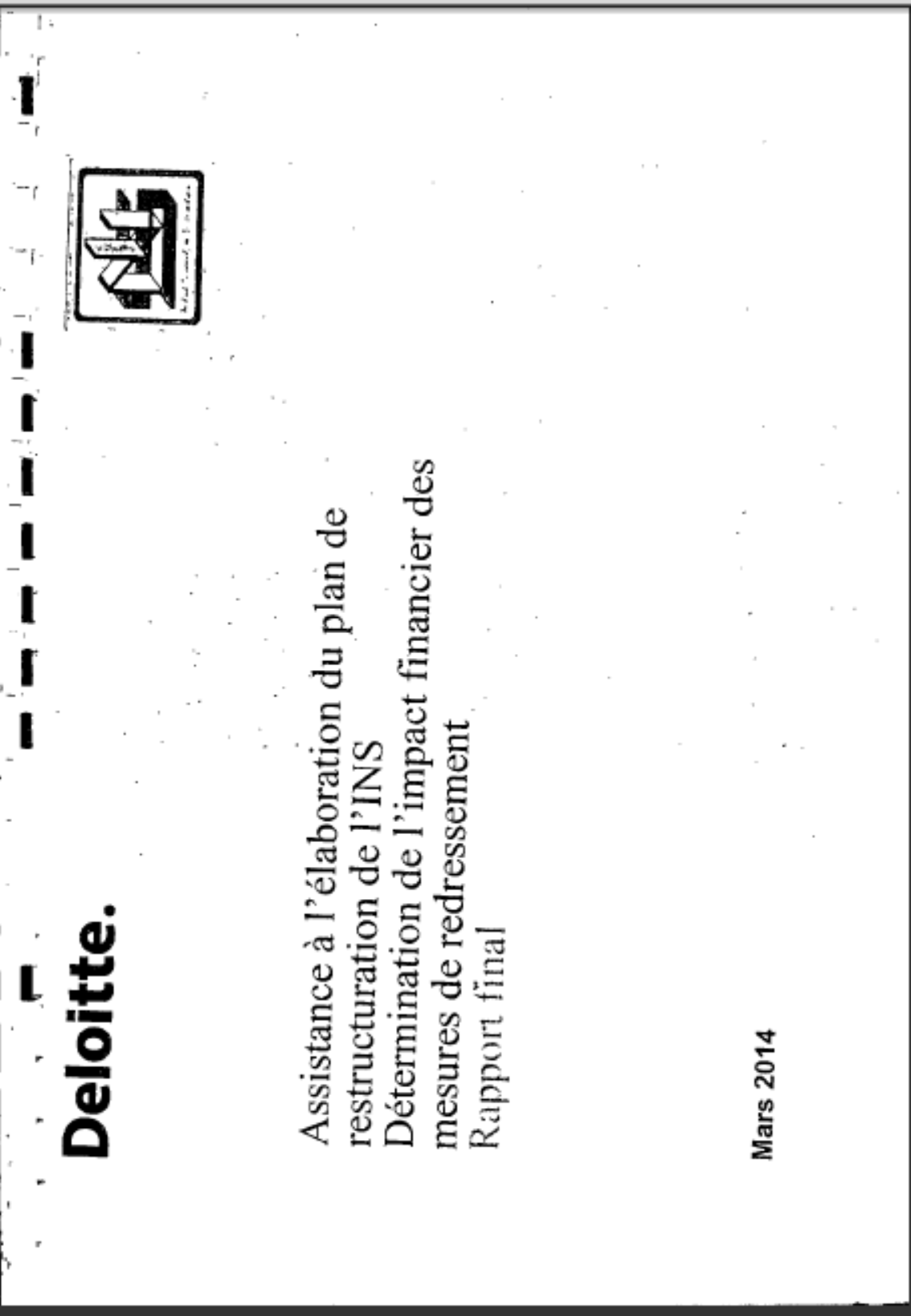 ASSISTANCE A L'ELABORATION DU PLAN DE RESTRUCTURATION DE L'INS DETERMINATION DE L'IMPACT FINANCIER DES MESURES DE REDRESSEMENT