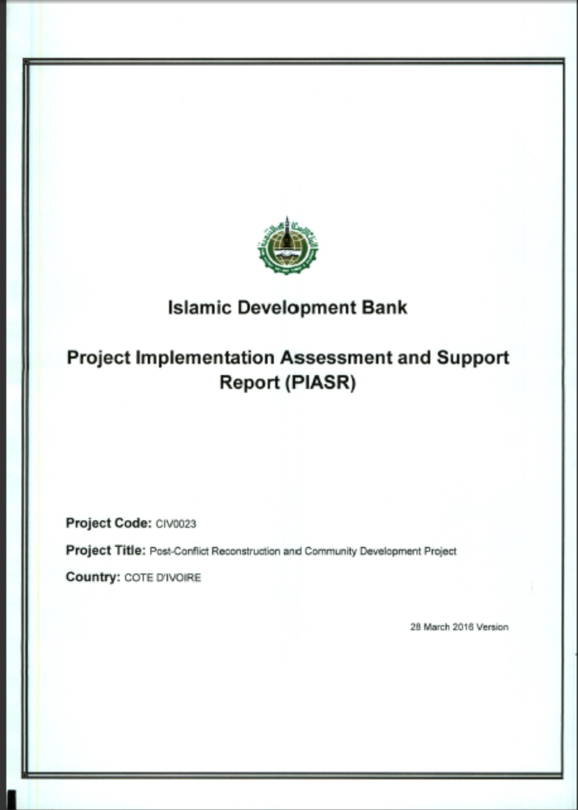 Rapport d'evaluation et d'accompagnement de la mise en oeuvre du projet (PIASR)