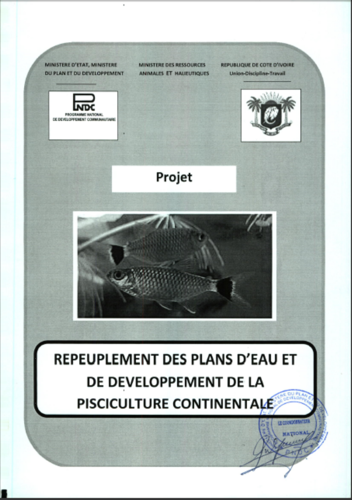 Projet de recrutement des plans d'eau et de developpement de le pisculture continental