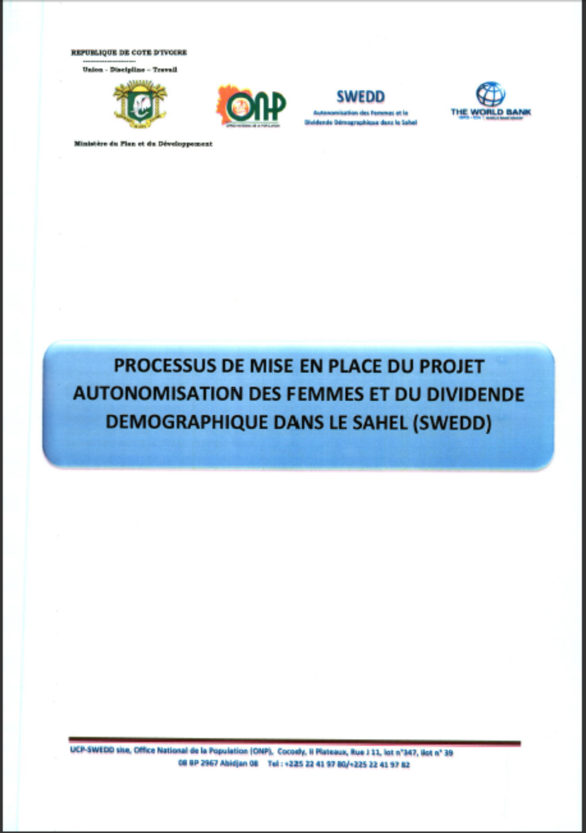 Processus de mise en place du projet autonomisation des femmes et du dividende demographique dans le sahel (SWEDD)