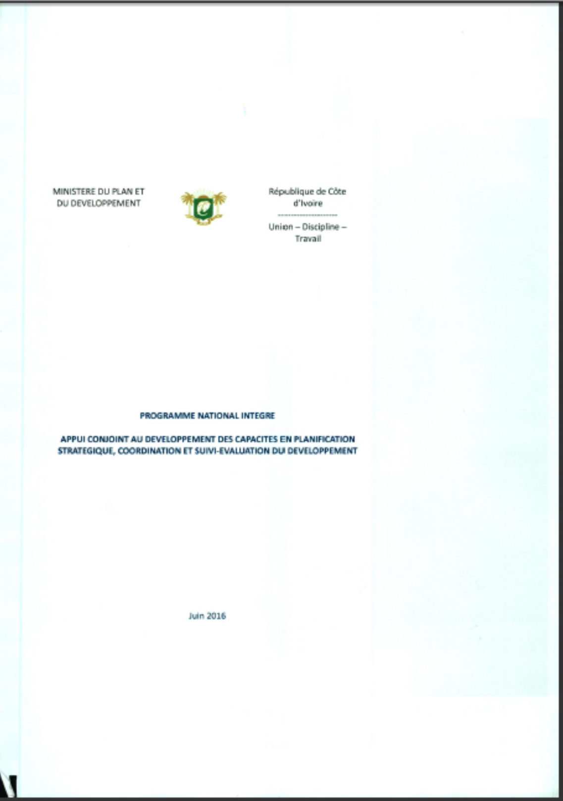 Programme national integré , appui conjoint au developpement des capacités en planification strategique, coordination et sui-evaluation du developpementt