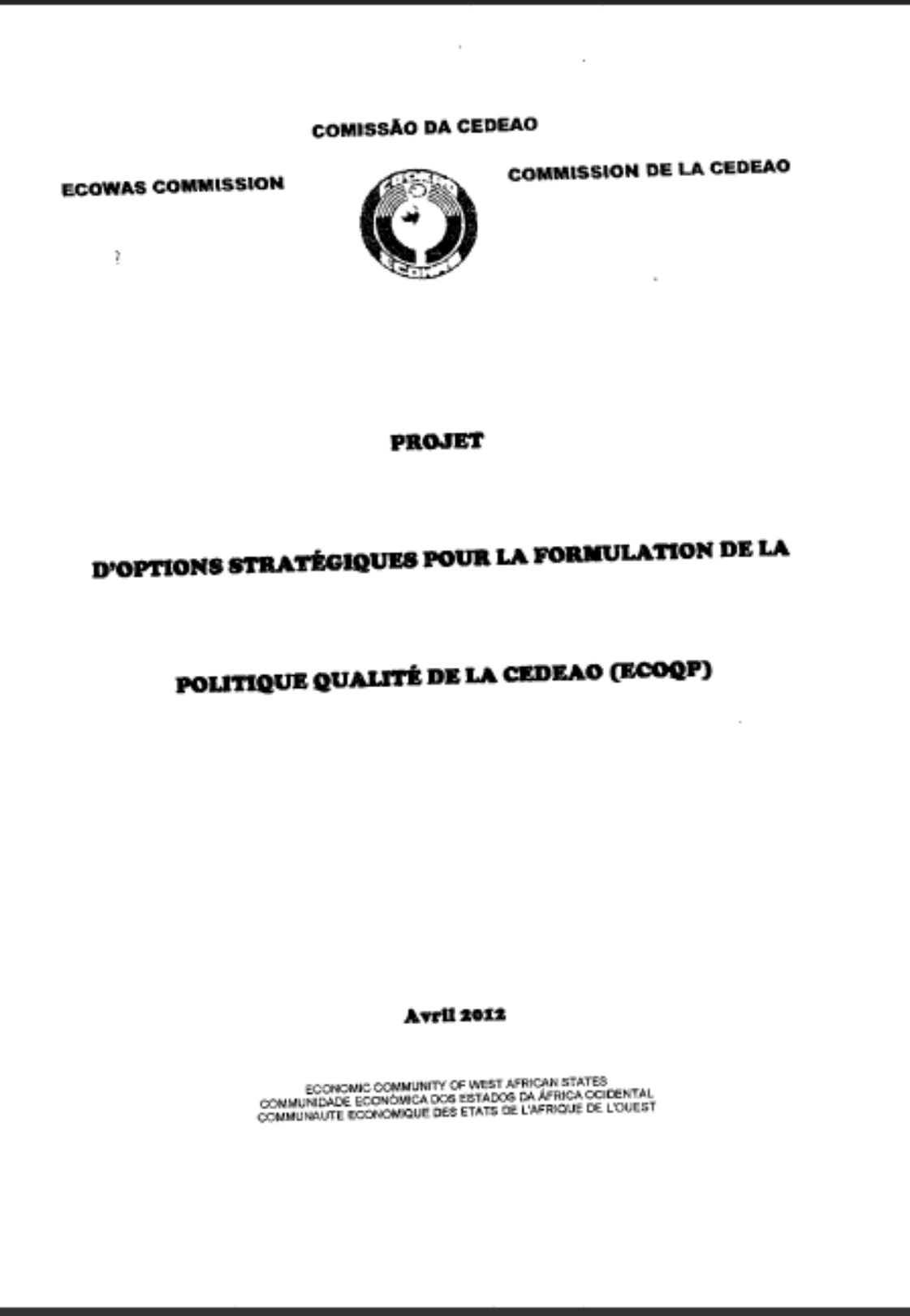 Projets strategiques pour la formulation de la politique qualité de la CEDEAO(ECOQP)