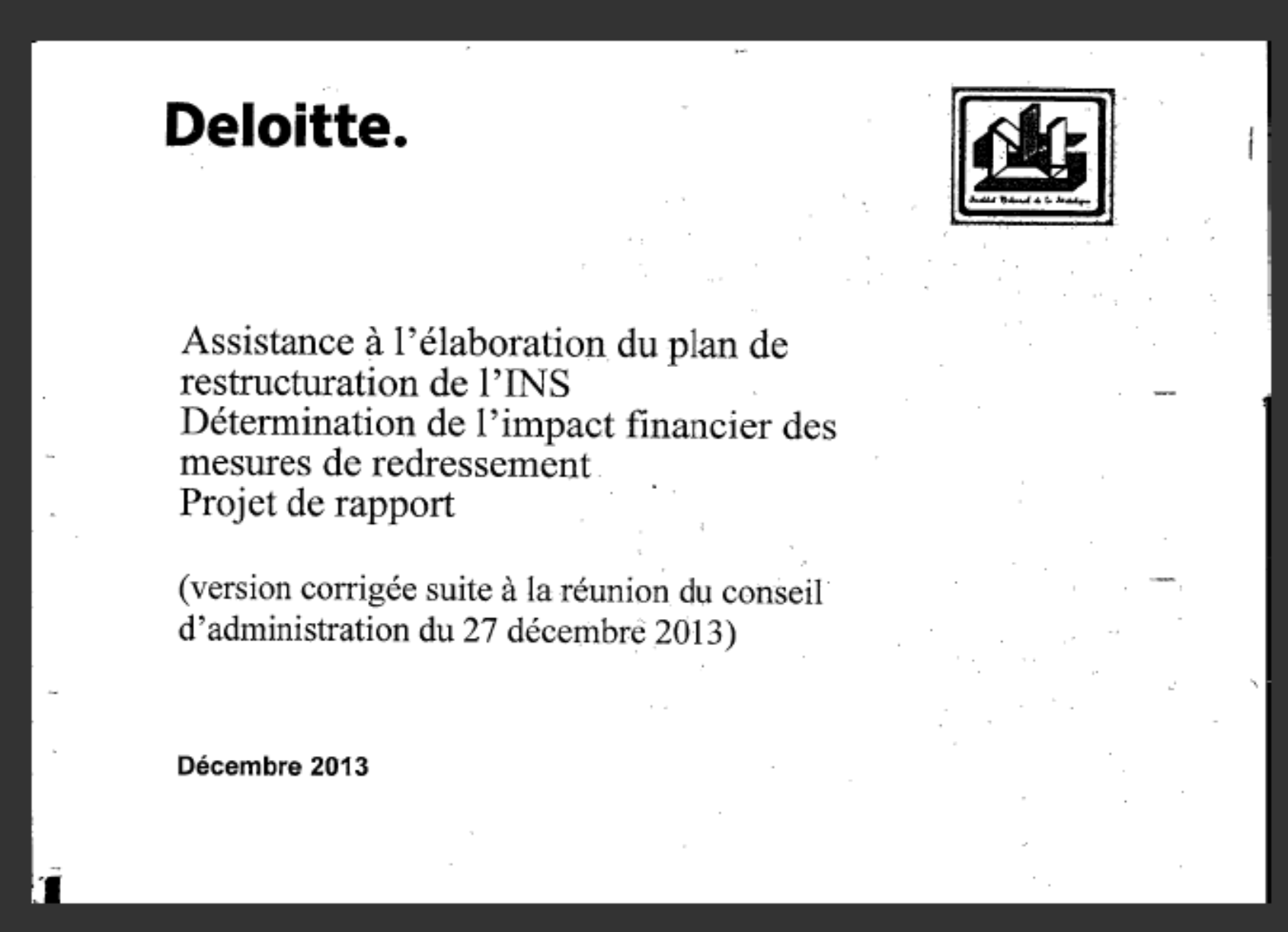 Assisance à l'elaboration du plan de restructuration de l'INS