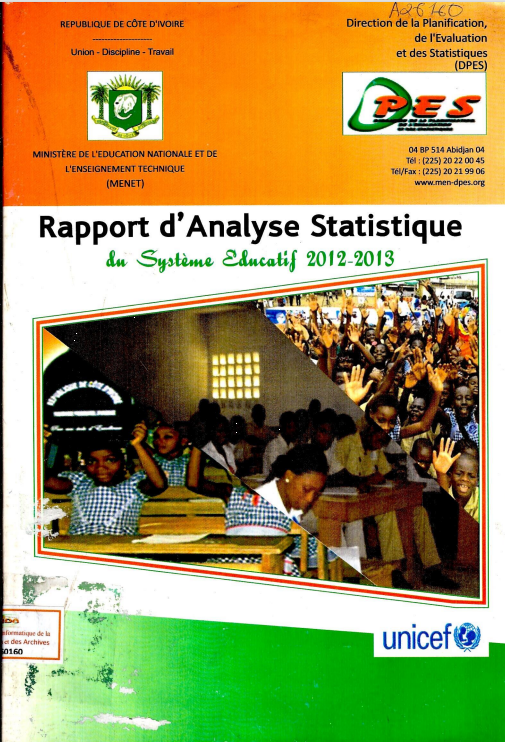 RAPPORT D'ANALYSE STATISTIQUE DU SYSTEME EDUCATIF 2012-2013