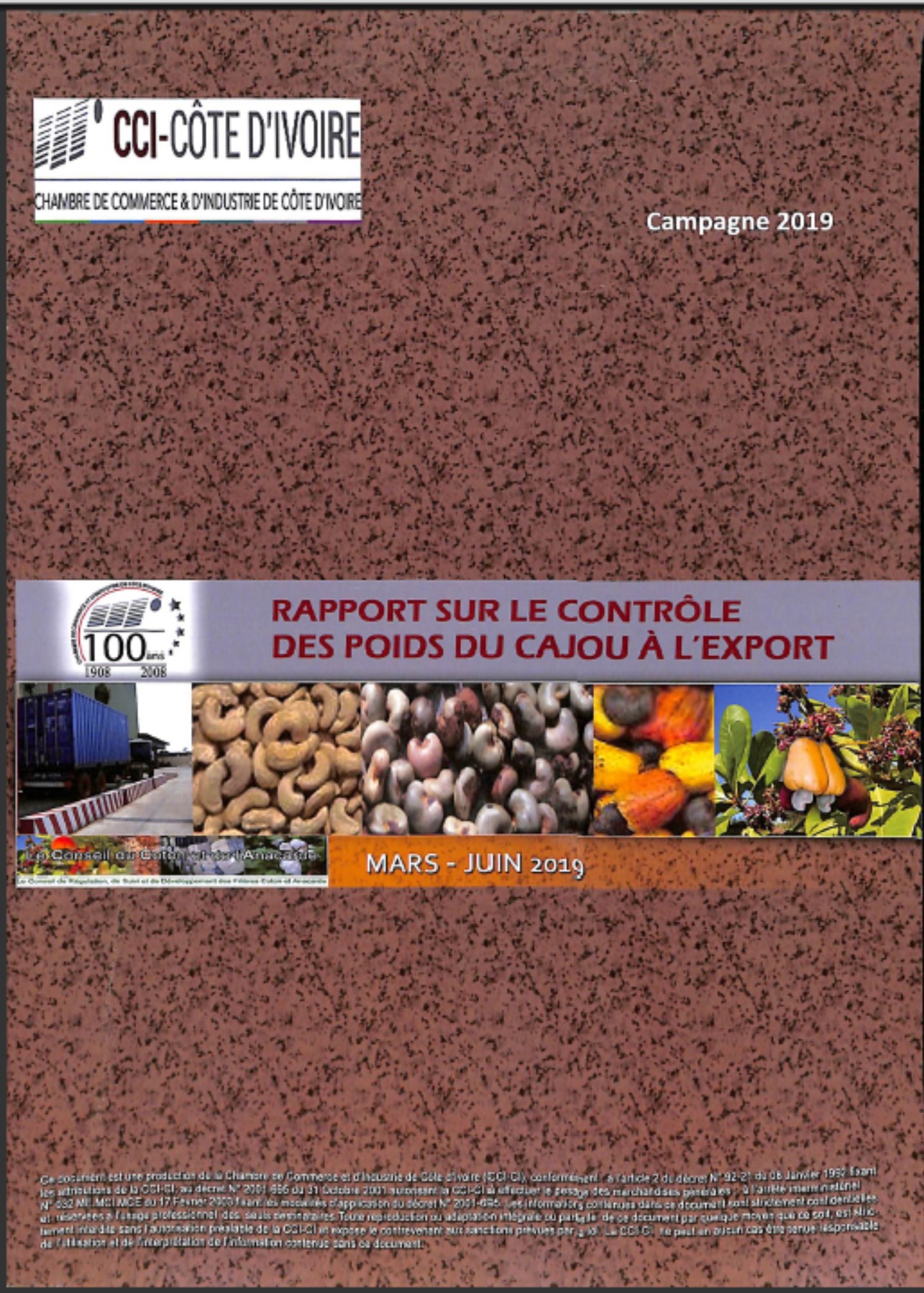 Rapport sur le contrôle des poids du cajou à l'export Mars Juin 2019, Campagne 2019