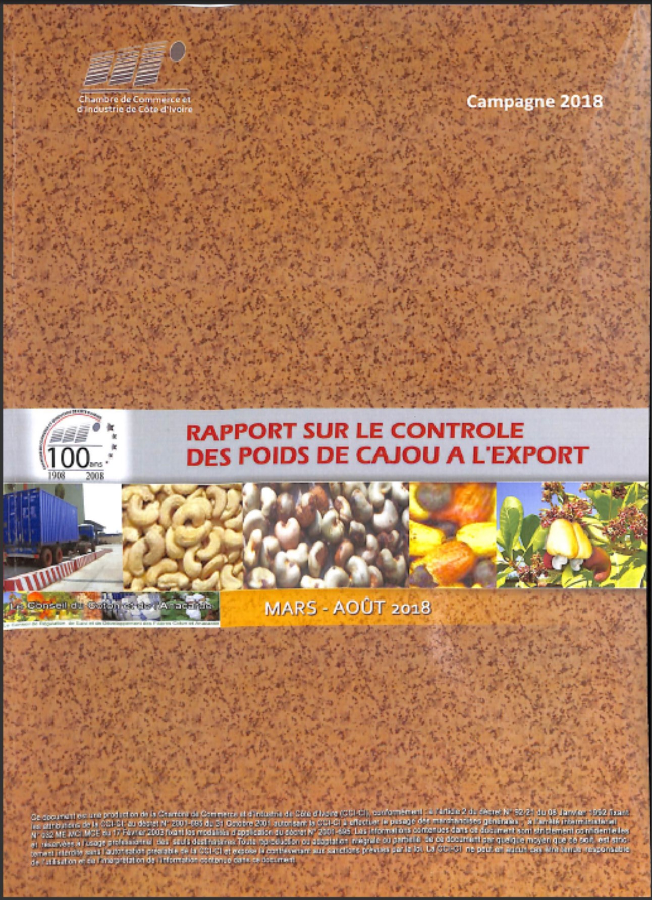 Rapport sur le controle des poids de cajou à l'export, campagne Mars - Aout 2018